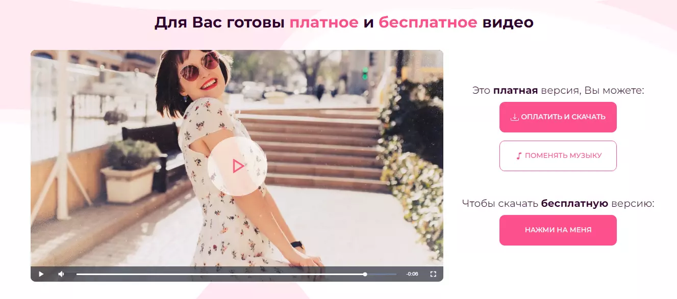 If you have an important event, choose the paid version. Choose a free one (with relatively simple effects)? There is a “click on me” button waiting for you. If you wish, you can replace the music (or upload your own). That’s all. Your video is downloading.