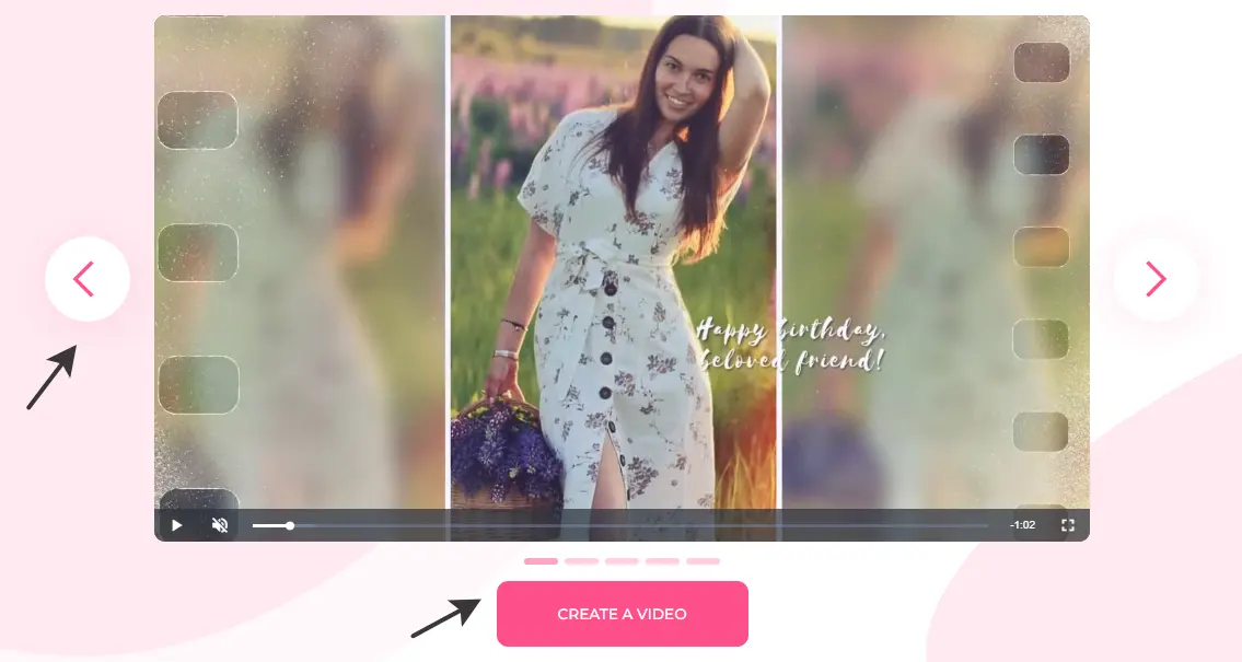 Choose your favorite design from the proposed collection and click “Create Video”. Various design effects will help you make the right choice.