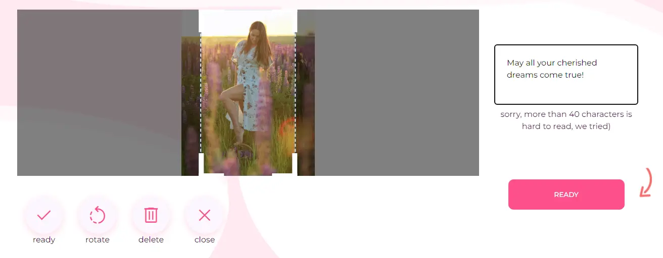 Upload 10 to 30 photos. Get out the archive of joint photos and find the most spectacular ones among them. Let the birthday girl remember the brightest moments in her life.