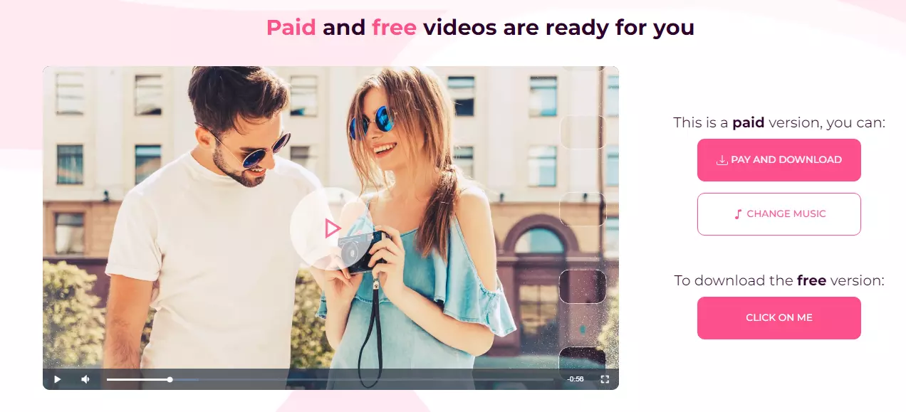 If you have an important event, choose the paid version. Choose a free one (with relatively simple effects)? There is a “click on me” button waiting for you. If you wish, you can replace the music (or upload your own). Your video is downloading.