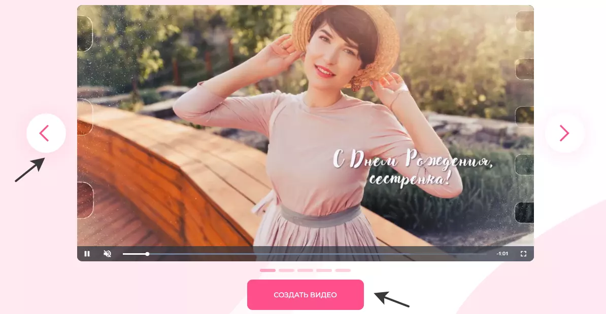 Для начала выберите понравившийся дизайн, который подходит размаху торжества и нажмите «Создать видео».